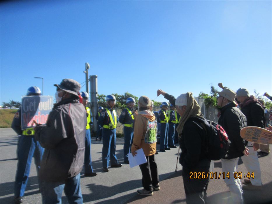 先週は、那覇から7時初のバスが、高速道路の工事に伴う交通渋滞で、9時の座り込みに遅刻するという波乱に見舞われたが、今日はさらに悪化した。