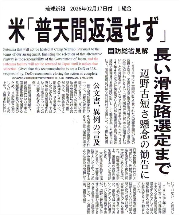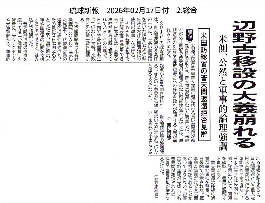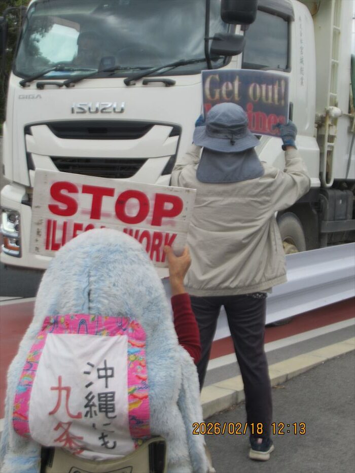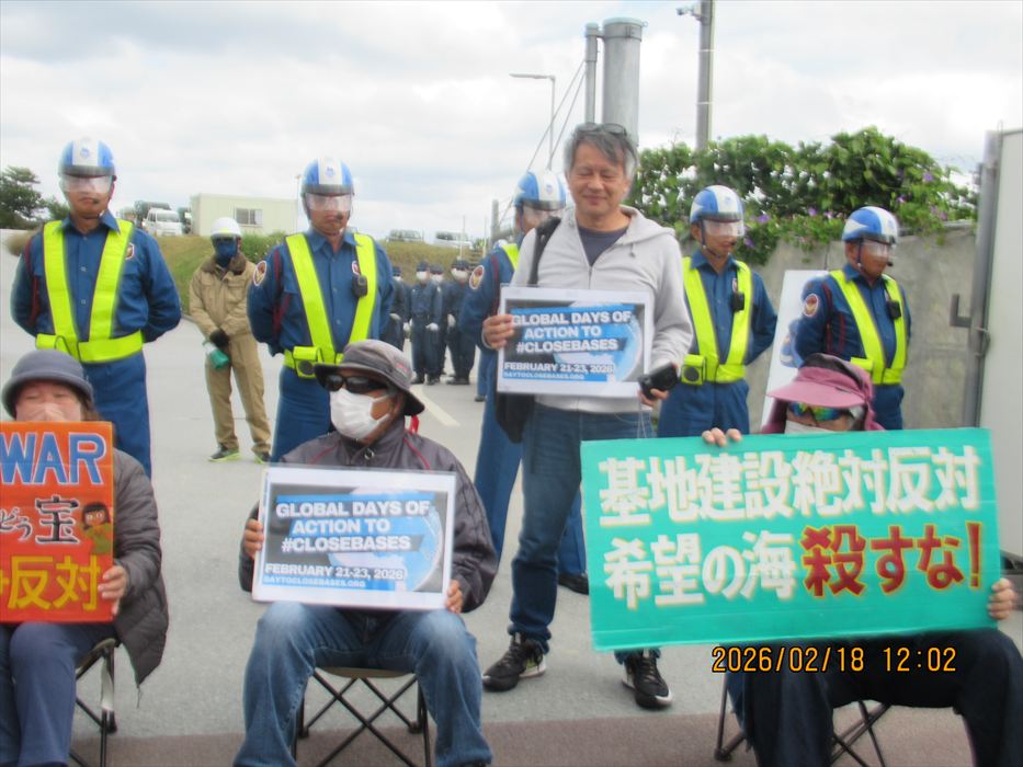 世界的に環境問題に取り組むNPO団体の吉川秀樹さんから「アメリカの平和団体Warld Beyond Warから、『世界の基地を閉鎖する日 2026.2.21 ~23」行動に沖縄も参加しませんか?という呼びかけがあった。沖縄は平日毎日行動しているので、週末は休みたい。そのかわり写真で参加することにした」と、写真での参加が呼びかけられた。「世界の基地を閉鎖する日」、この声が世界に広がると、イイね!