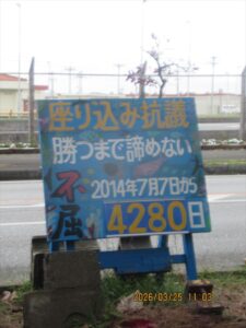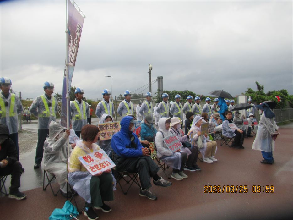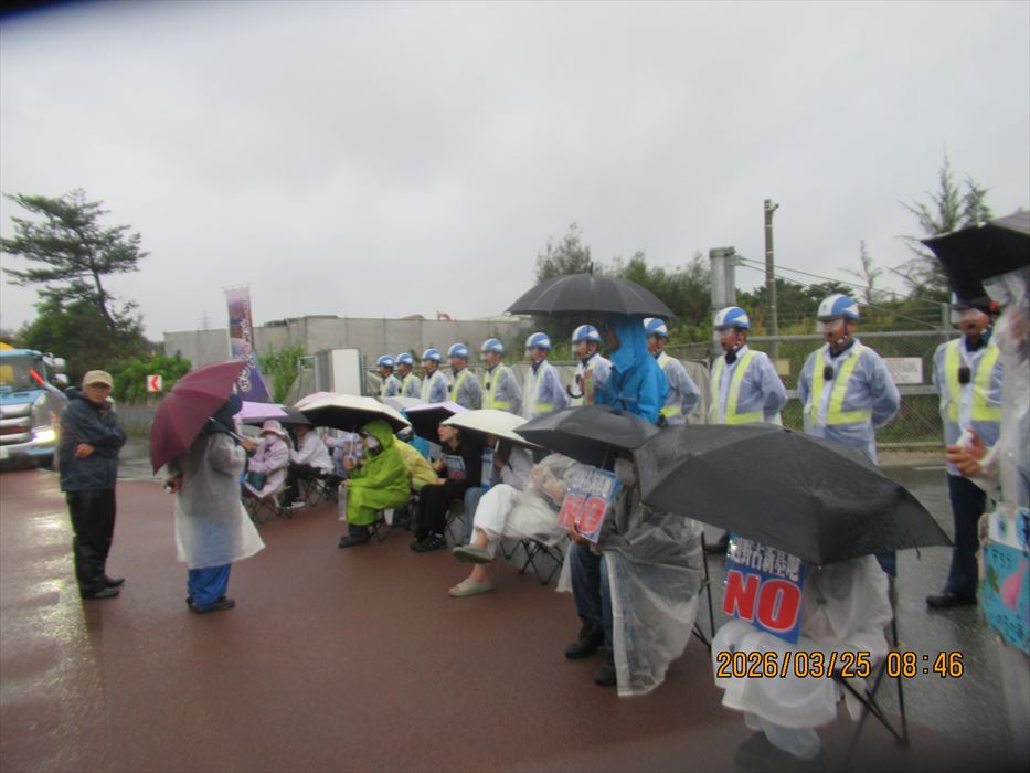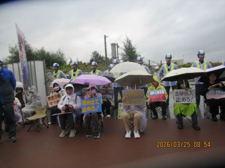 今週は、関西で日本軍「慰安婦」問題に取り組む11人の友人らを迎えての辺野古である。小雨がちらつき、前日の春の陽気が嘘だったかのような空模様、肌寒い。