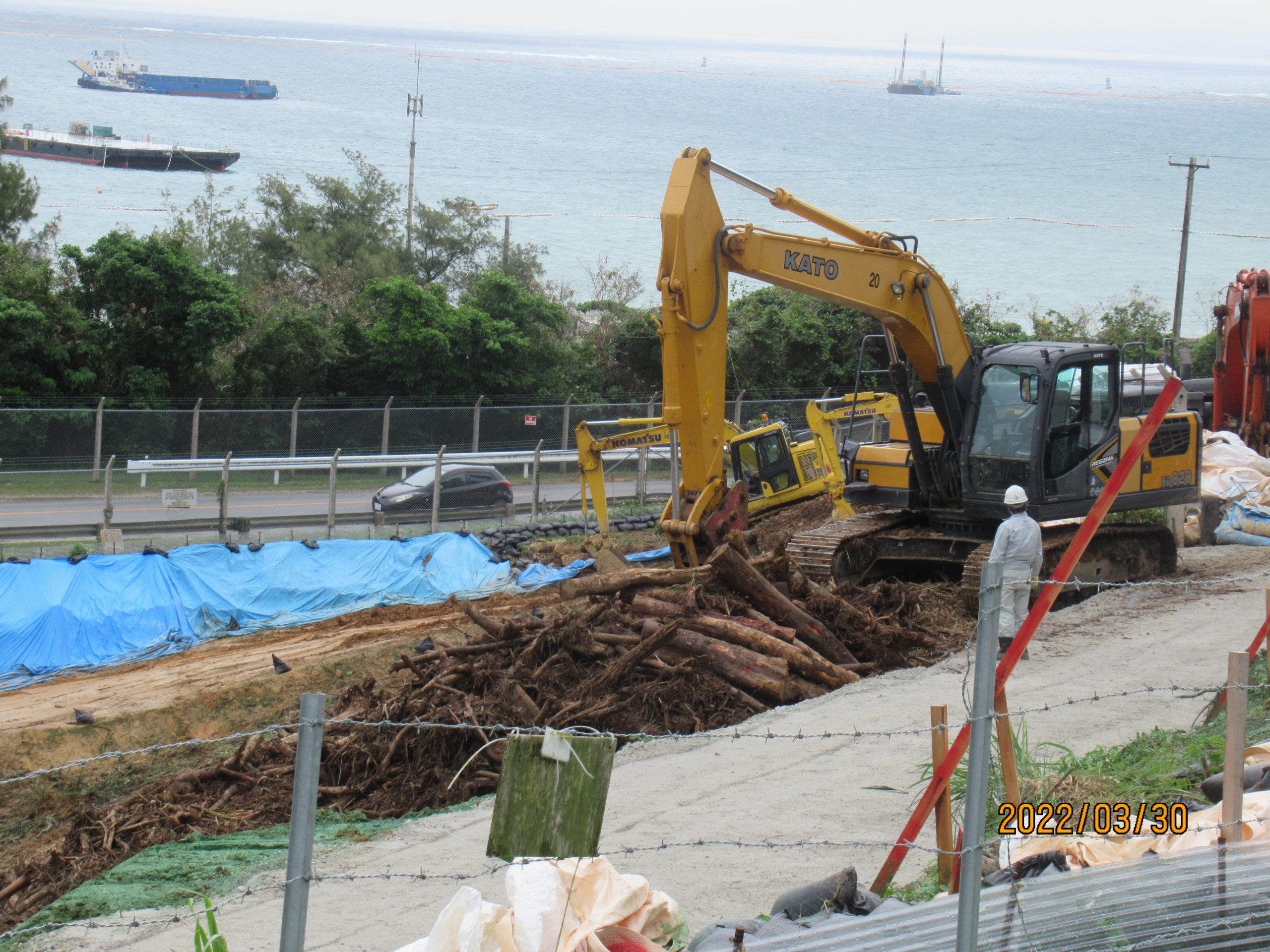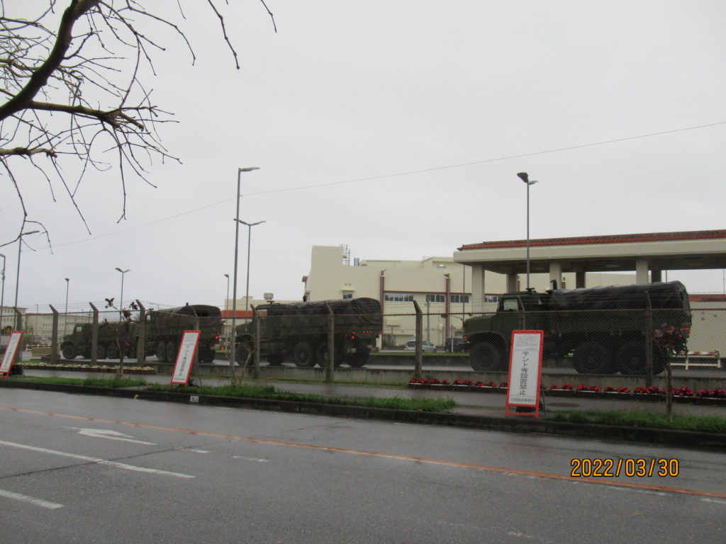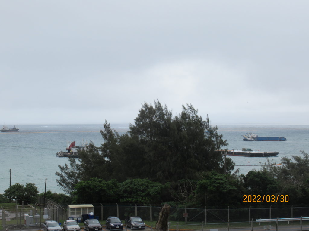 最近分かったことで、物資を運んでいるダンプの決まり事として、営業中は企業名が明記されていなければ、違法運航になるとのこと。先週から安和桟橋や塩川港に出入りするダンプのチェックで、違法ダンプが多く見つかり摘発されたという。