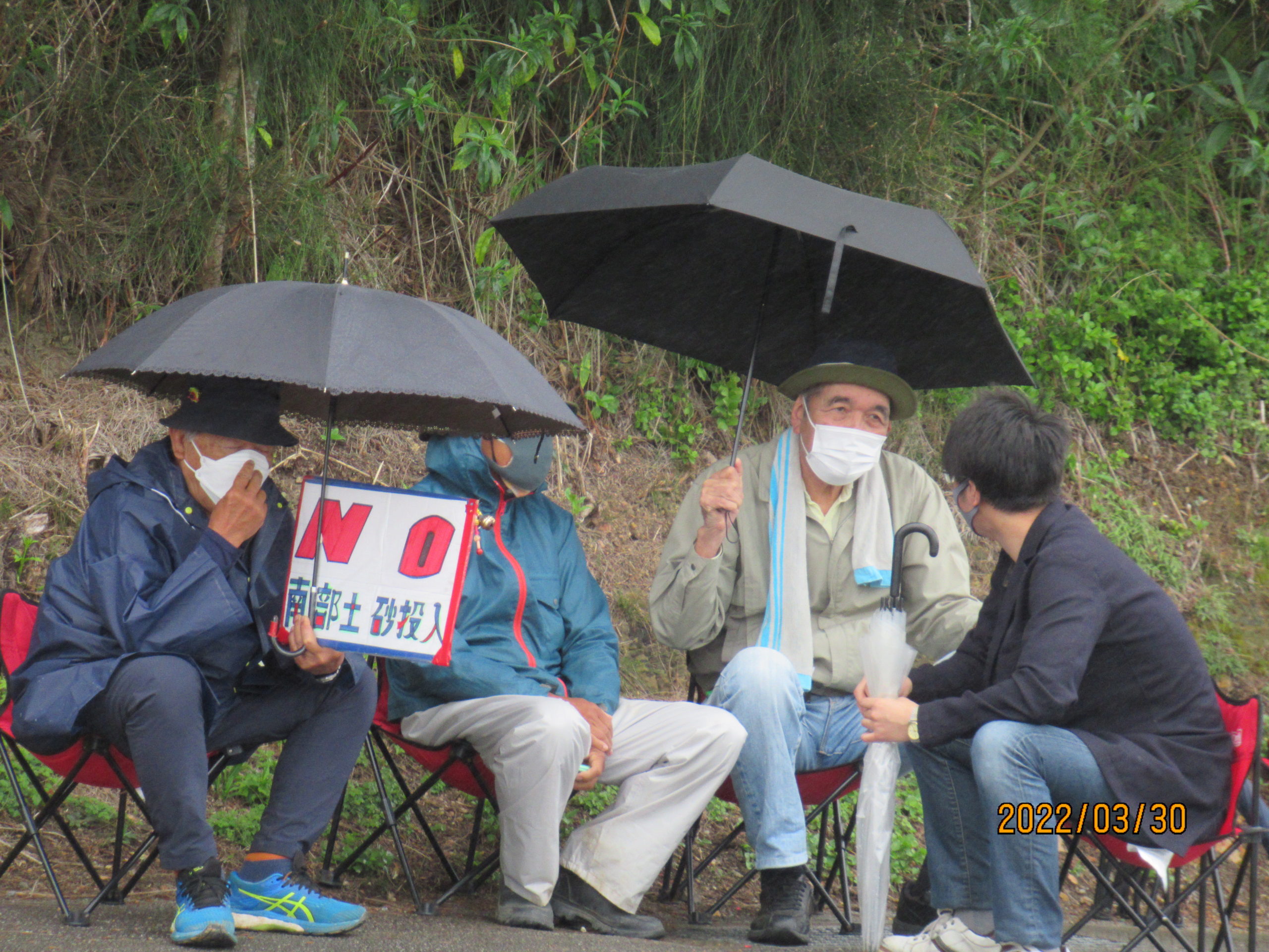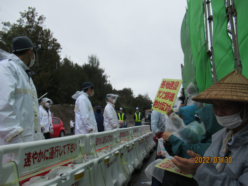 梅雨後半(芒種)の季節に入り、雨続きの沖縄。例年の3倍の雨が降っているとのこと。今日(8日)も午前30%、午後70%の降水確率との予報の中、辺野古へ。