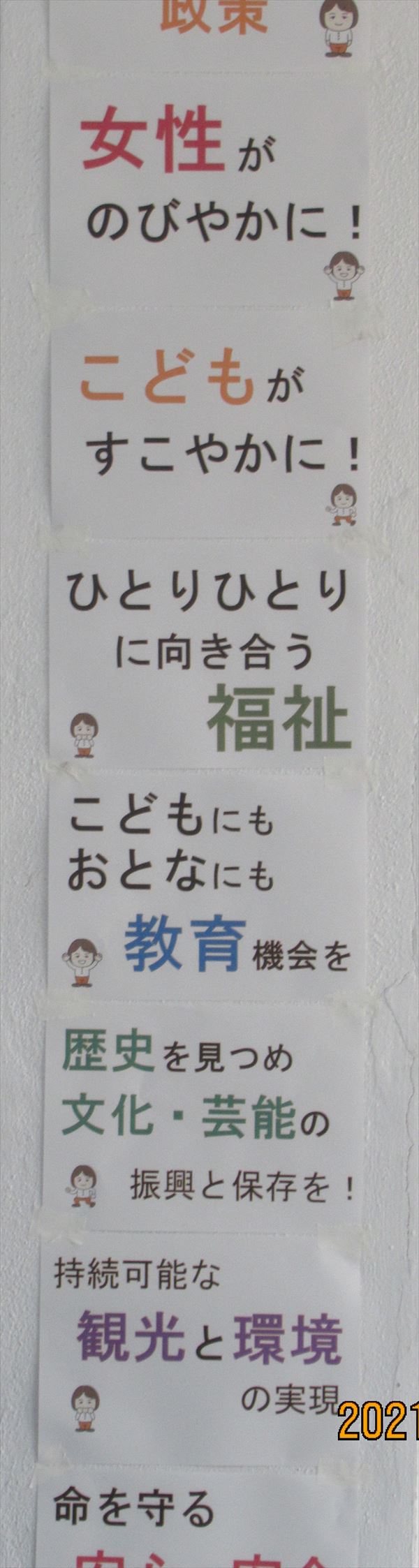 帰り道、うるま市のメインストリートを通ると、有り余る資金に任せて、電柱ごとに相手候補のポスター「島袋市長の後継者!56歳」がずらっと張られているのが見えました。電柱へのポスター張りは選挙違反です!
