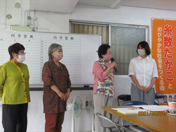 うるま市の繁華街にある選対事務所は活気にあふれていました。