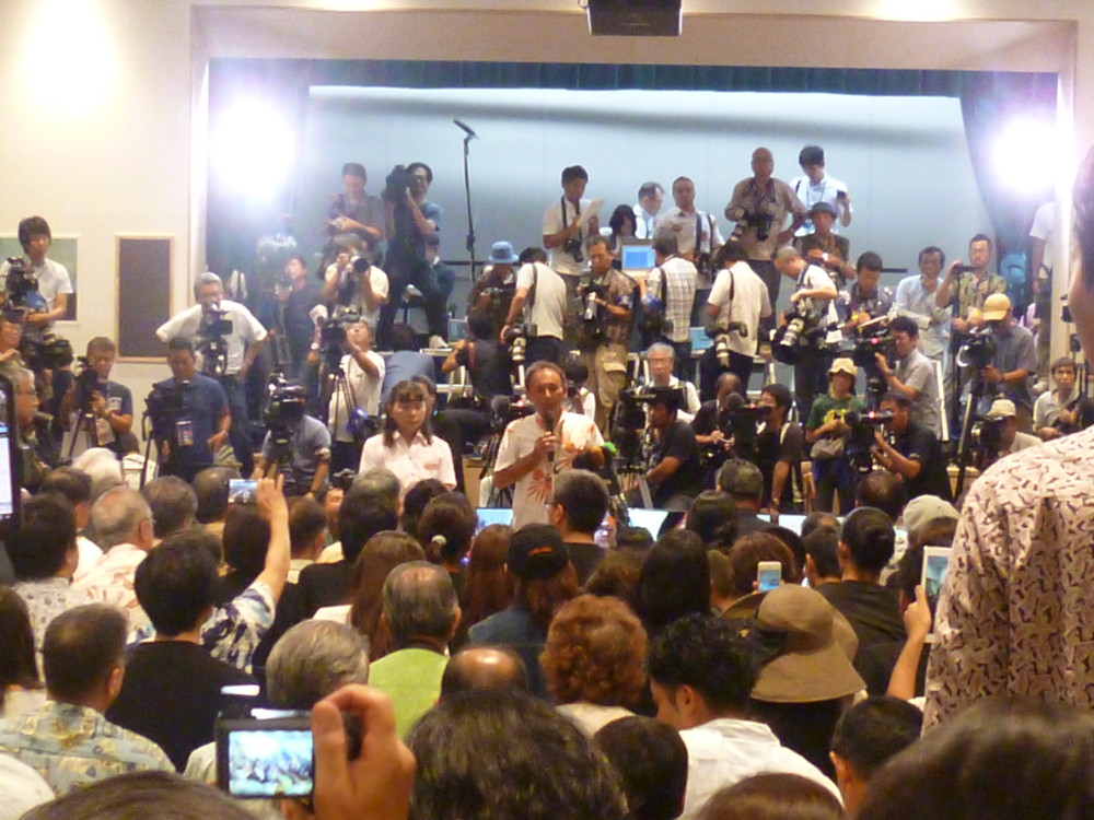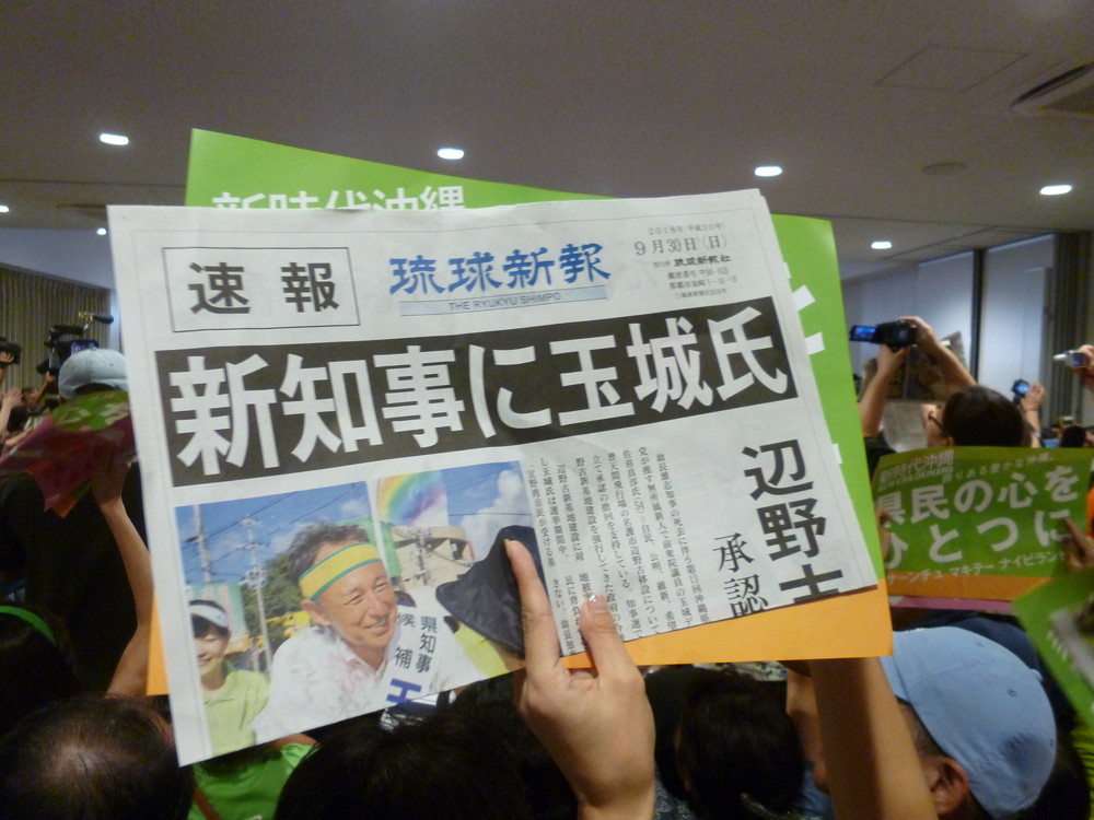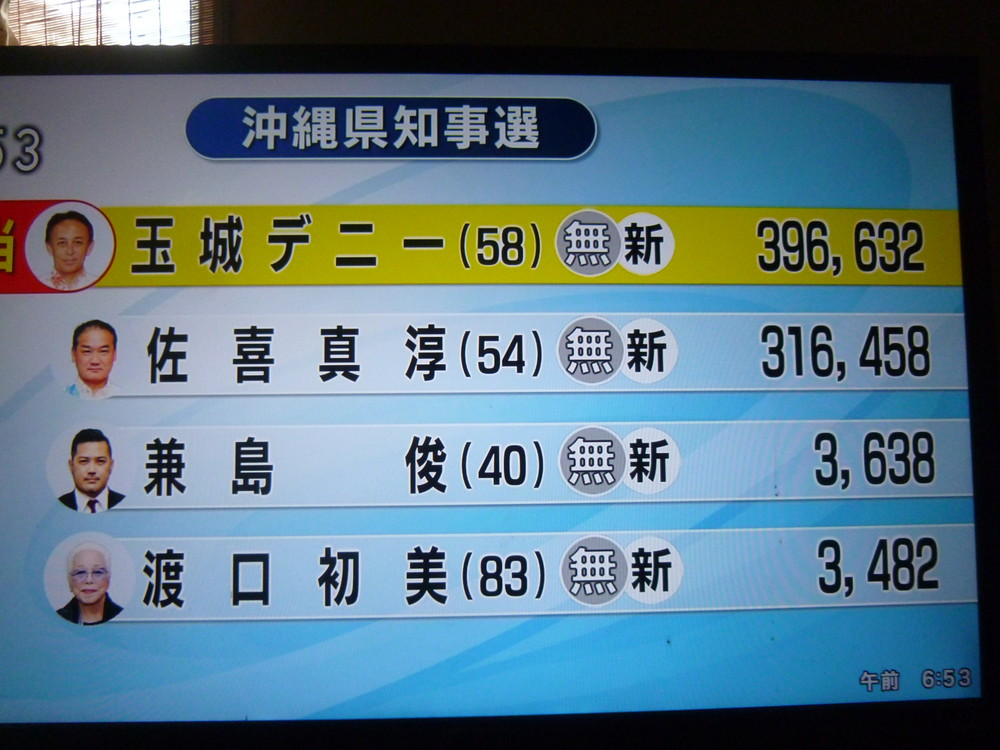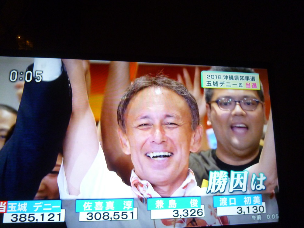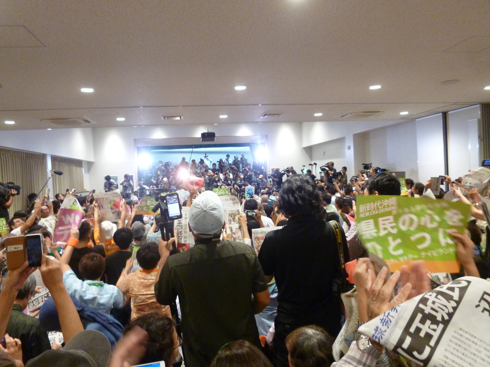 接戦と言われたが、結果的に8万票の大差。4年前翁長知事が獲得した26万票も大きく超え、堂々の当選だった。