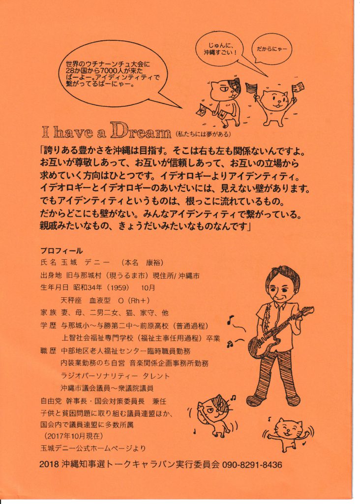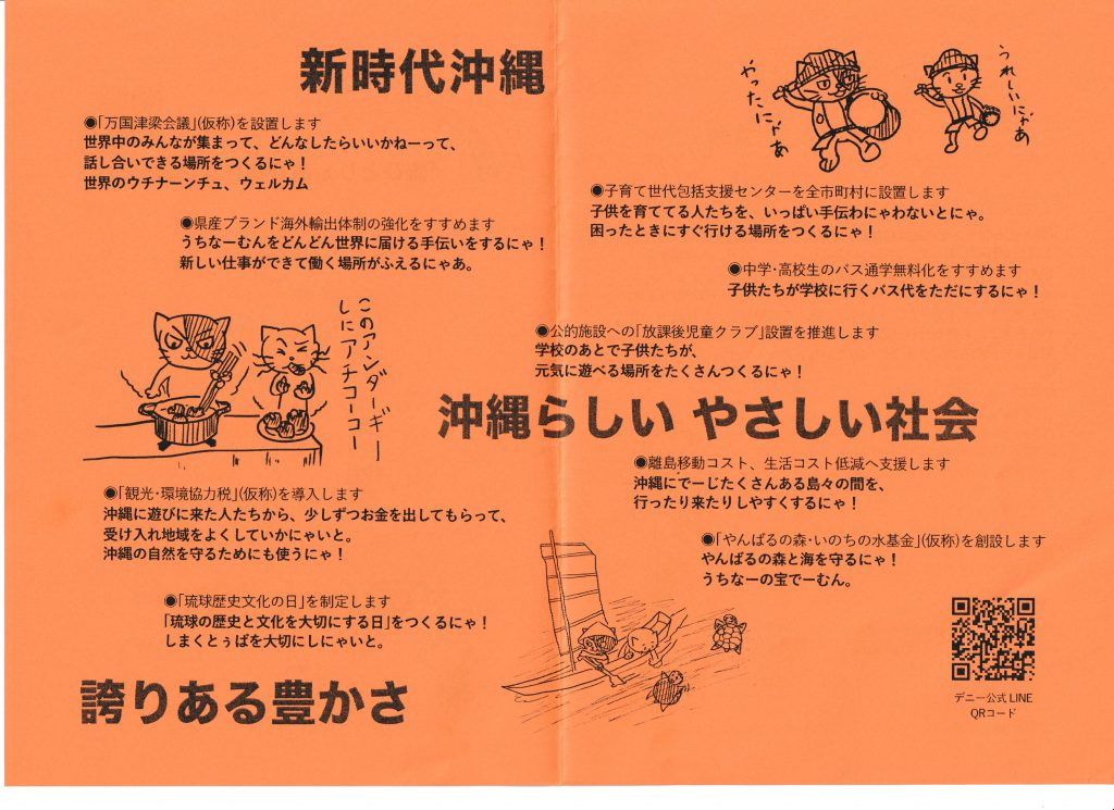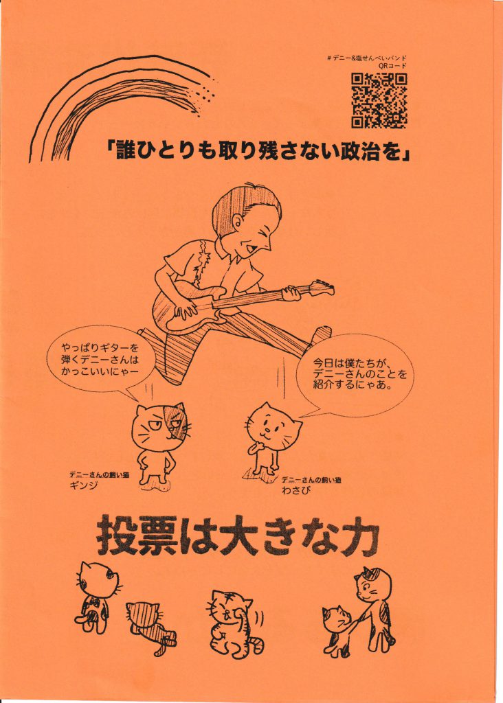 われらデニー応援団 ② ネット上のフェイクニュースに騙されやすい若者たちに、デニーさんんの政策や人柄が伝わるチラシを!と、同じ若者グループが、手作りチラシを作成した。 若者たちよ!ぜひ、デニーさんと相手候補がどう違うのか、自らの頭と心で考え判断してほしい。 バーコードでさらに詳しいことを調べることもできるよ! 2018年9月25日unaiリンクURL