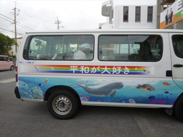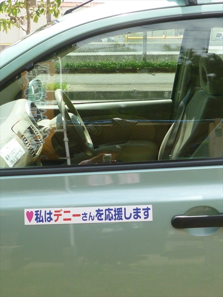 われらデニー応援団 ① 相手候補は国家ぐるみで組織的に大々的に選挙戦をばく進しているのに対し、こちらデニー陣営は、小さなグループや個人が、細々ながらそれぞれが工夫を凝らし、必死に、でも楽しく、自主的に、デニーさんを応援している。 『どこにも「デニー」とは書いていないが、デニーの幟といっしょにどこまでもついていきます』とデザインの個人事務所を経営する若い男性が、車と横断幕をもって、市民グループがつくる選挙事務所に申し出てきた。 この車用のステッカーもこの方が手作りした。デザインし、印刷し、裏にマグネットを張って、一枚一枚カットして何百枚も作って配った。この熱い思いが届かないはずはない。 2018年9月25日unaiリンクURL