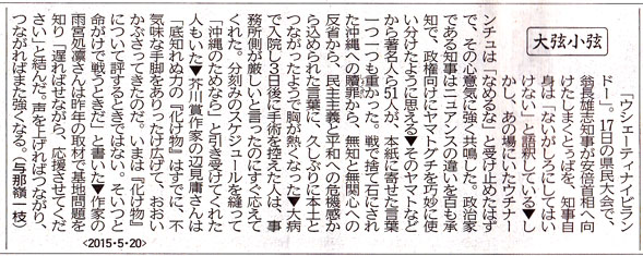 そして、翁長知事は「これ以上民意を無視し、新基地を押し付けるならば