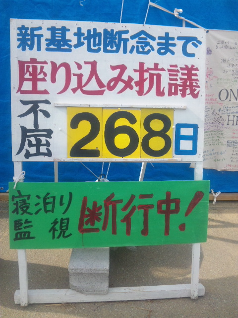 一夜明けた今朝の辺野古ゲート前は