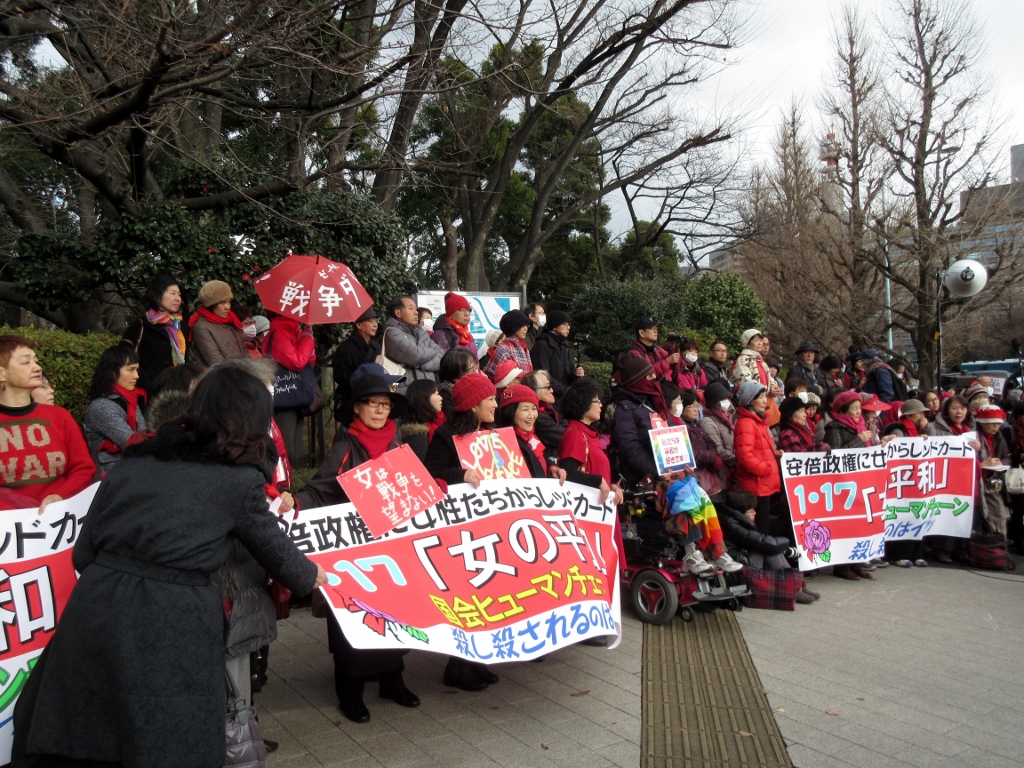 去る1月17日、女たちが阿部政権の「集団的自衛権」など戦争政策にレッドカードを突き付けた赤いヒユーマンチェーン・「女たちの平和」の様子が、実行委員会によって動画になりました。外国向けに造られたため、フロントページの説明文は英語(PCの機種によっては自動翻訳される)ですが、動画は日本語です。是非ご覧ください。(下記のアドレスをクリックしてください)
