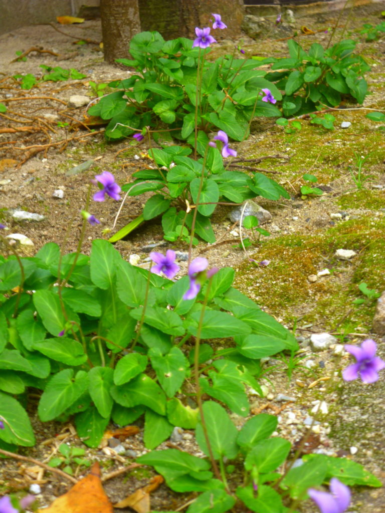 フクギの木陰になっていてあまり増えませんが、それでも季節になるとしっかり芽吹き可憐な紫の花をつけてくれます。花一つひとつも眺めて飽きませんが、群生もまたいいです。