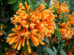 カエンカズラ(火焔葛)は、南アメリカ原産のつる性常緑低木。名前の由来は、花が乱れ咲く様が炎が燃えだしている様子に似ていることから来ています。