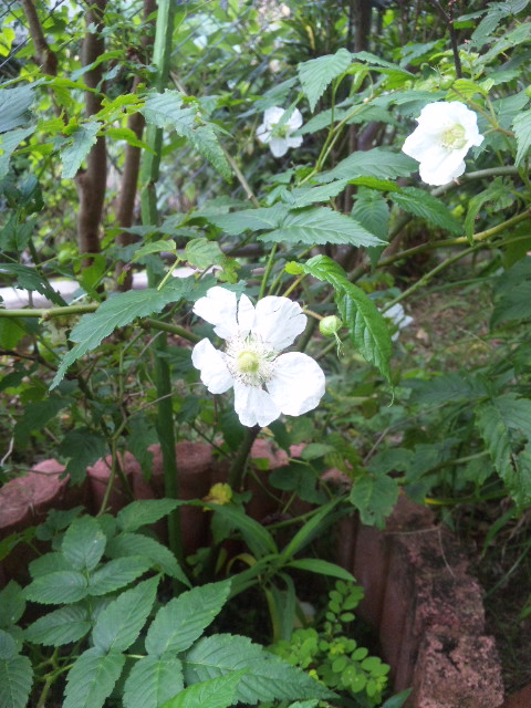 渡嘉敷島から苗を移植した野イチゴ(リュウキュウバライチゴ)の花が、三年目にしてやっと咲きました。3月から4月ごろには実が熟するはずです。楽しみ!