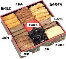 お重の中には定番の赤い寒天、串に刺したゆでピーナツ、緑のよもぎ餅、魚の唐揚げなどが、形良く並んでいたのを、懐かしく思い出します。