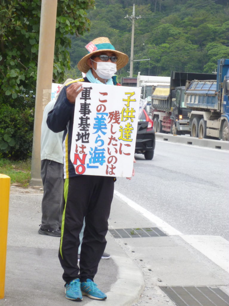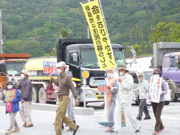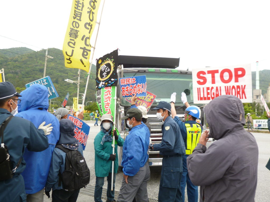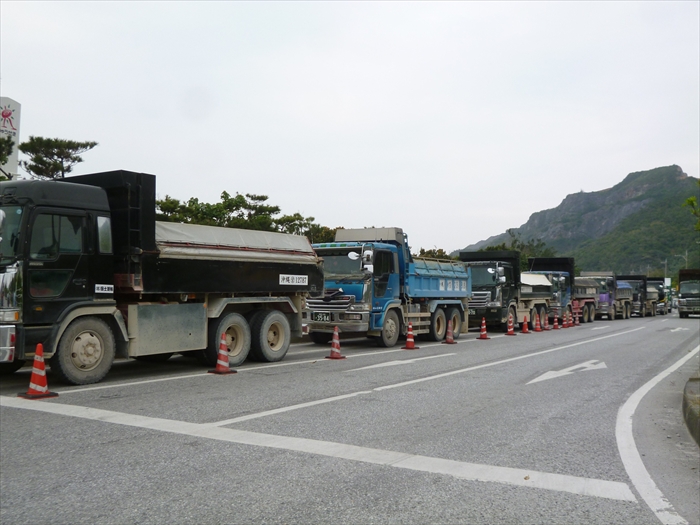 水曜日は安和集中行動日。朝8時、安和に着くと、すでに赤土を満載したダンプが列をなして、港に入っていた。
