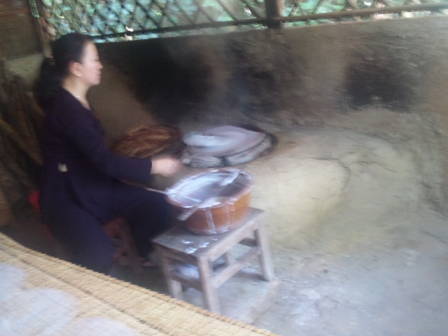 隣の人(年配の女性)が、自分がくるまっていたていたテーブルクロスらしき固い布を