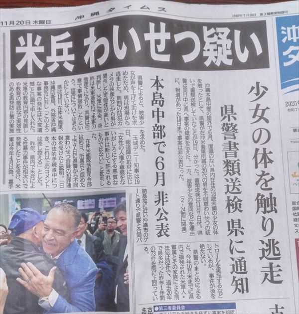 綱紀粛正や夜間パトロール、兵士教育も何のその、米兵による性暴力事件は起こり続ける。何度も言うが、これらの出来事は偶発的なものではなく、そもそもが軍隊は構造的暴力だからだ。彼らにとって女性狩りは、兵士能力の高さを誇示するためのもの。根絶するには軍隊そのものを無くすしかない。