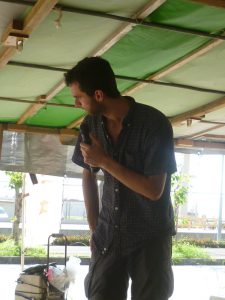 一回目の搬入が終わった後、ギリシャとアメリカの若者たち12名が、座り込みテントを訪れた。