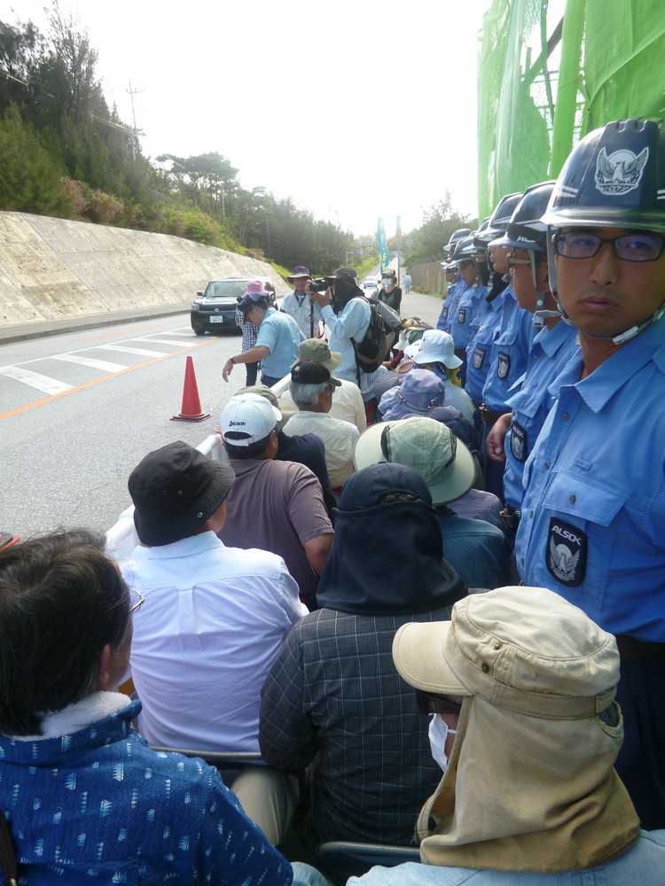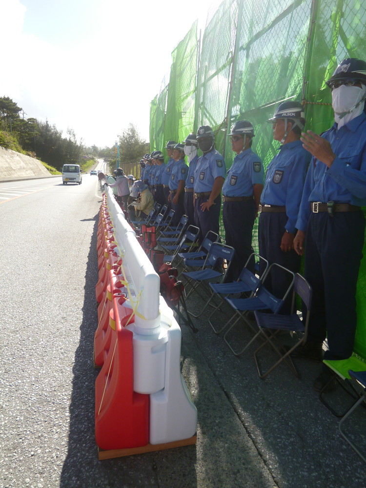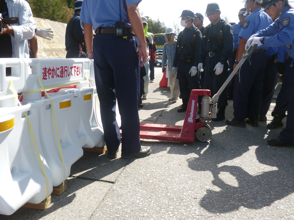 午前9時前、いつものように工事車両の第一陣がやってきた。機動隊が排除(ごぼう抜き)を始めたが、皮肉なことに設置されたバリロードのせいで、一斉に襲い掛かることはできず、狭い隙間から一人ずつしか引っ張り出せない。いつもより時間がかかった。