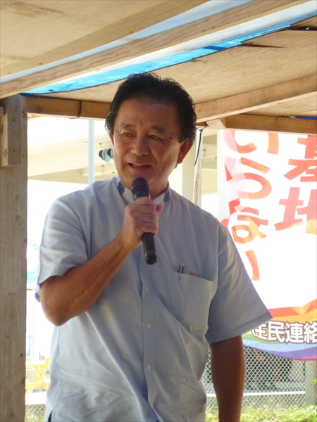 オール沖縄会議の高良鉄美、稲嶺進共同代表がそれぞれ挨拶。ともに「辺野古新基地建設は税金の無駄遣い、防衛費を社会保障や教育に回すべき」と訴えた。「当初3600億円といわれた辺野古の基地建設費は、すでに5000億円以上を投入している。今後完成までに1兆円では済まないだろう」と。