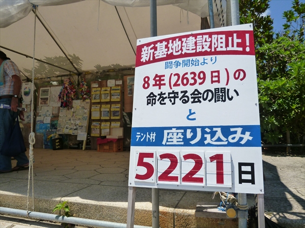 いつものように8:00過ぎにはゲート前に座り込んだが、定刻になっても県警の機動隊が来ない。どうやら今日は搬入はなさそうということになった。10:30にはメインゲート前のテントの下に移動して、正午からの県民集会につなげることになった。