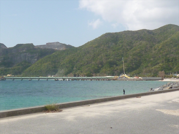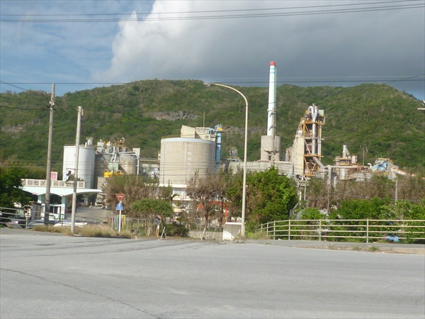 真向かいに琉球セメント安和工場がある。山から削り取られた土砂は、道路を横断するだけですぐ港に入る。さらに桟橋から船へは、ベルトコンベアで直通という、これ以上ないシチュエーションである。