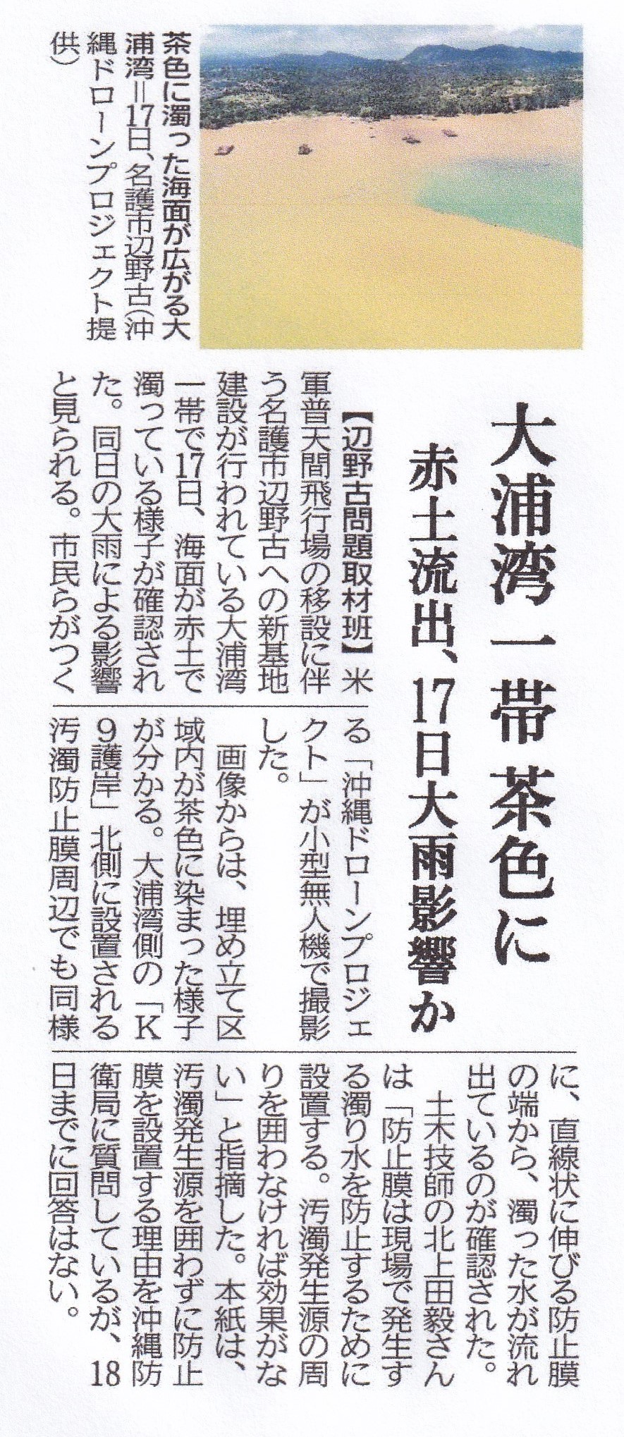 明日からはまた機動隊が戻ってくる。南国沖縄ではまだまだ続く炎天下、辺野古でも、安和でも、塩川でも厳しい攻防が待っている。決意を新たにした一日だった。