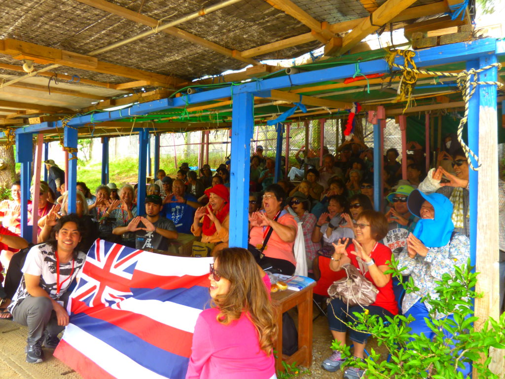 リーダーのエリックさんが、最後に大きな声で呼びかけた。「うちなぁんちゅ!負きてーないびらんどう!(沖縄人のみんな!屈してはなりませんよ!)」