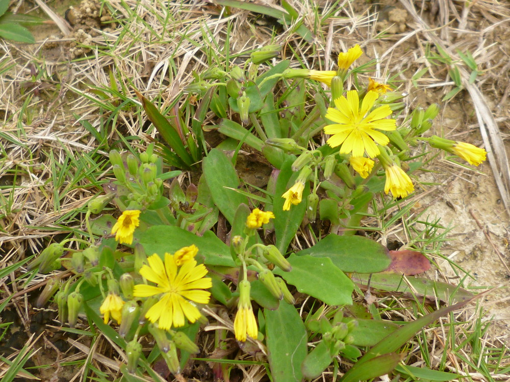 国立青年交流の家の敷地内でニガナ(ホソバワダン)の花が芝生を彩っていました。