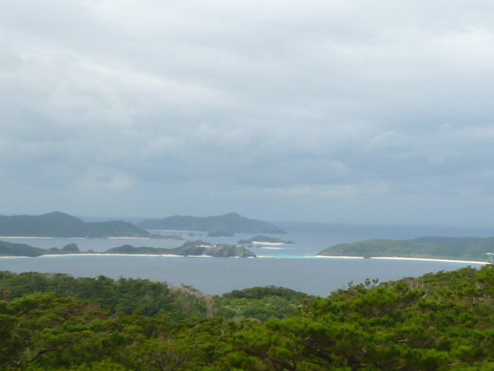 北山(ニシヤマ)展望台から眺める慶良間海峡。お天気は悪かったですが,慶良間ブルーに輝いていました。今年はきっといいことがあると思います。