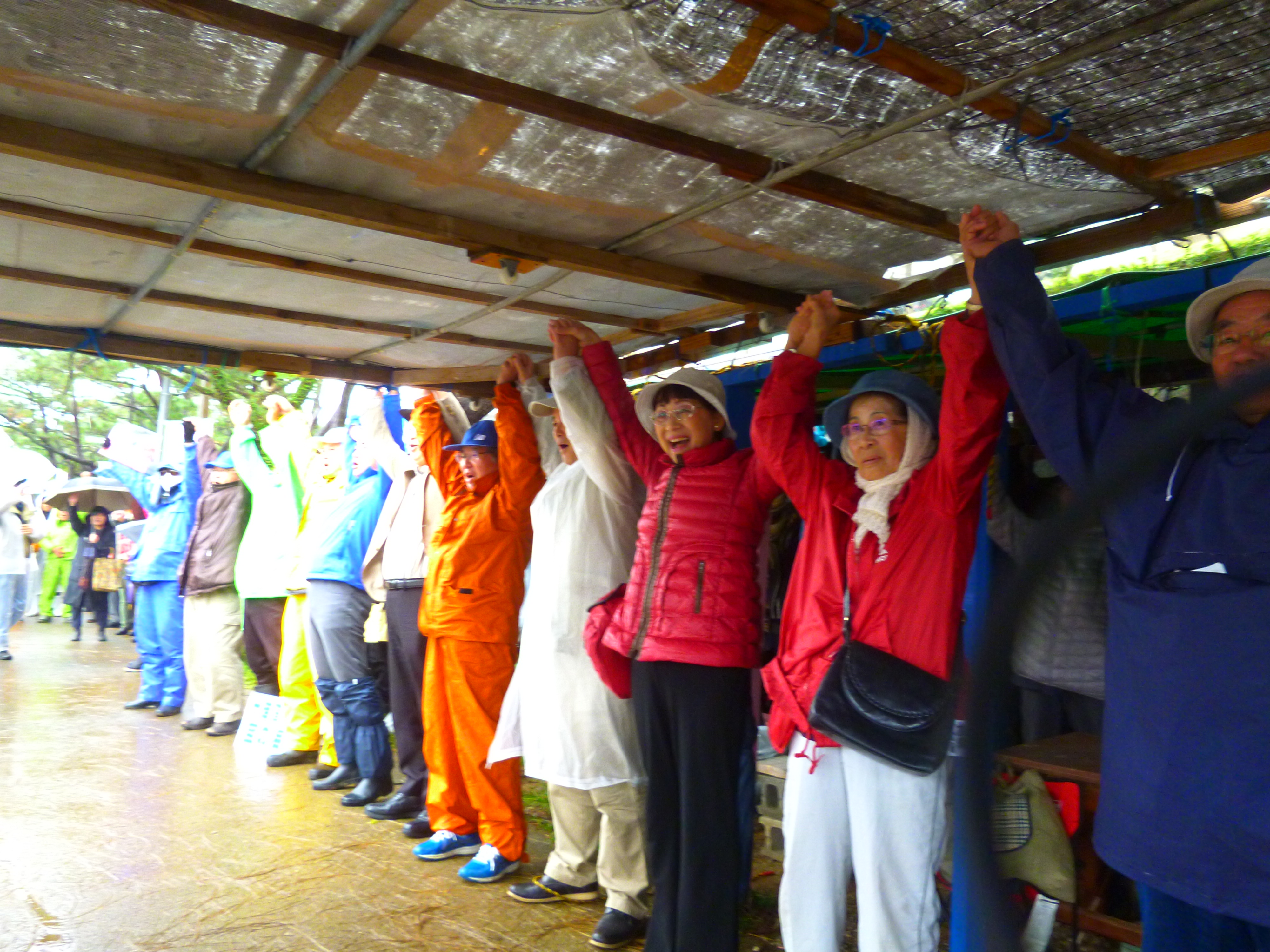 集会の最後はオール沖縄式頑張ろう!でさらなる団結を誓い合った。