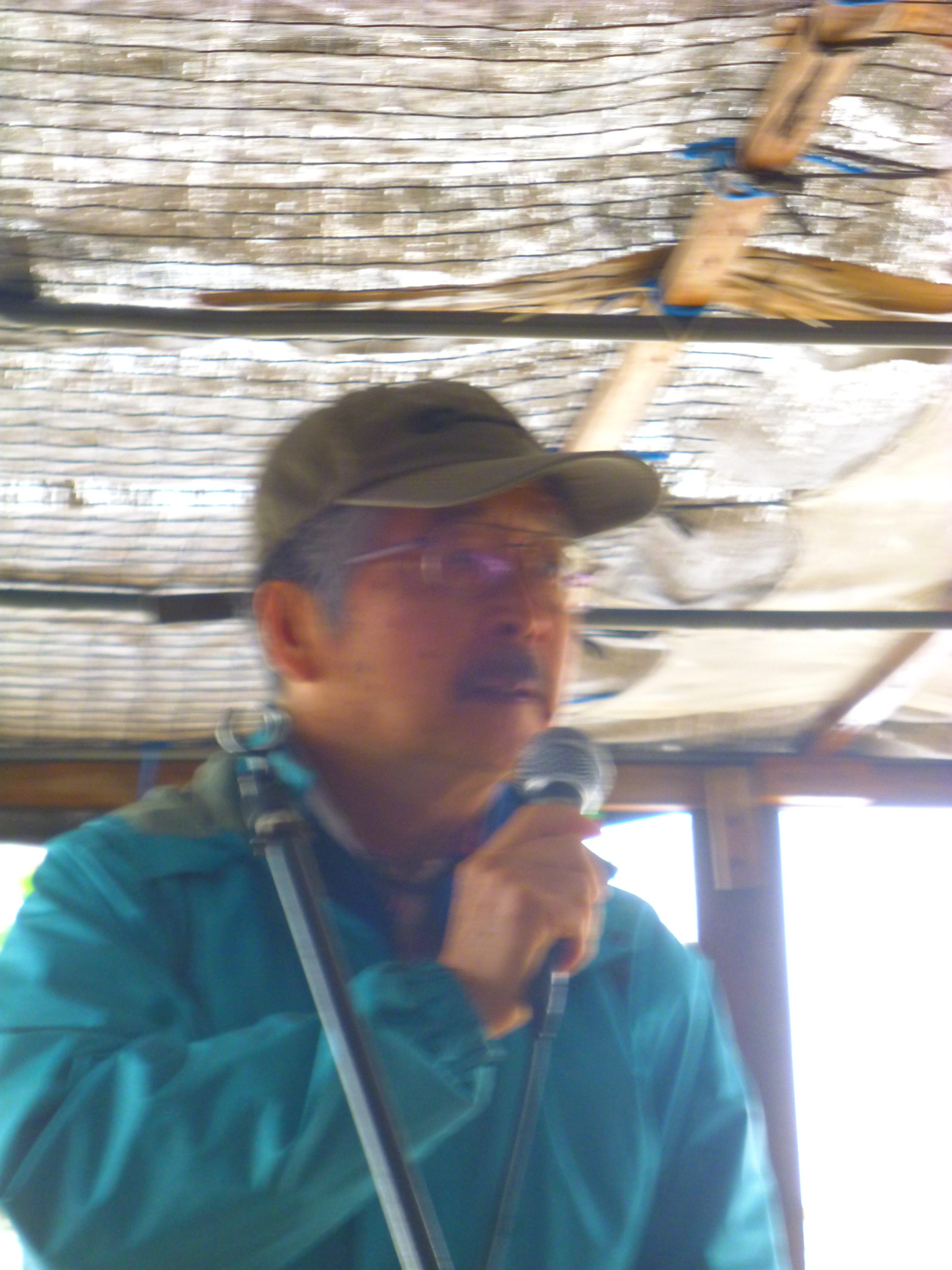 主催者であるヘリ基地反対協の安次富浩さんと、オール沖縄会議の稲嶺進さんがそれぞれ挨拶。いくつもある抗議行動の現場の中でも、一番厳しい行動を強いられるカヌーチームの力強い働きを称えた。