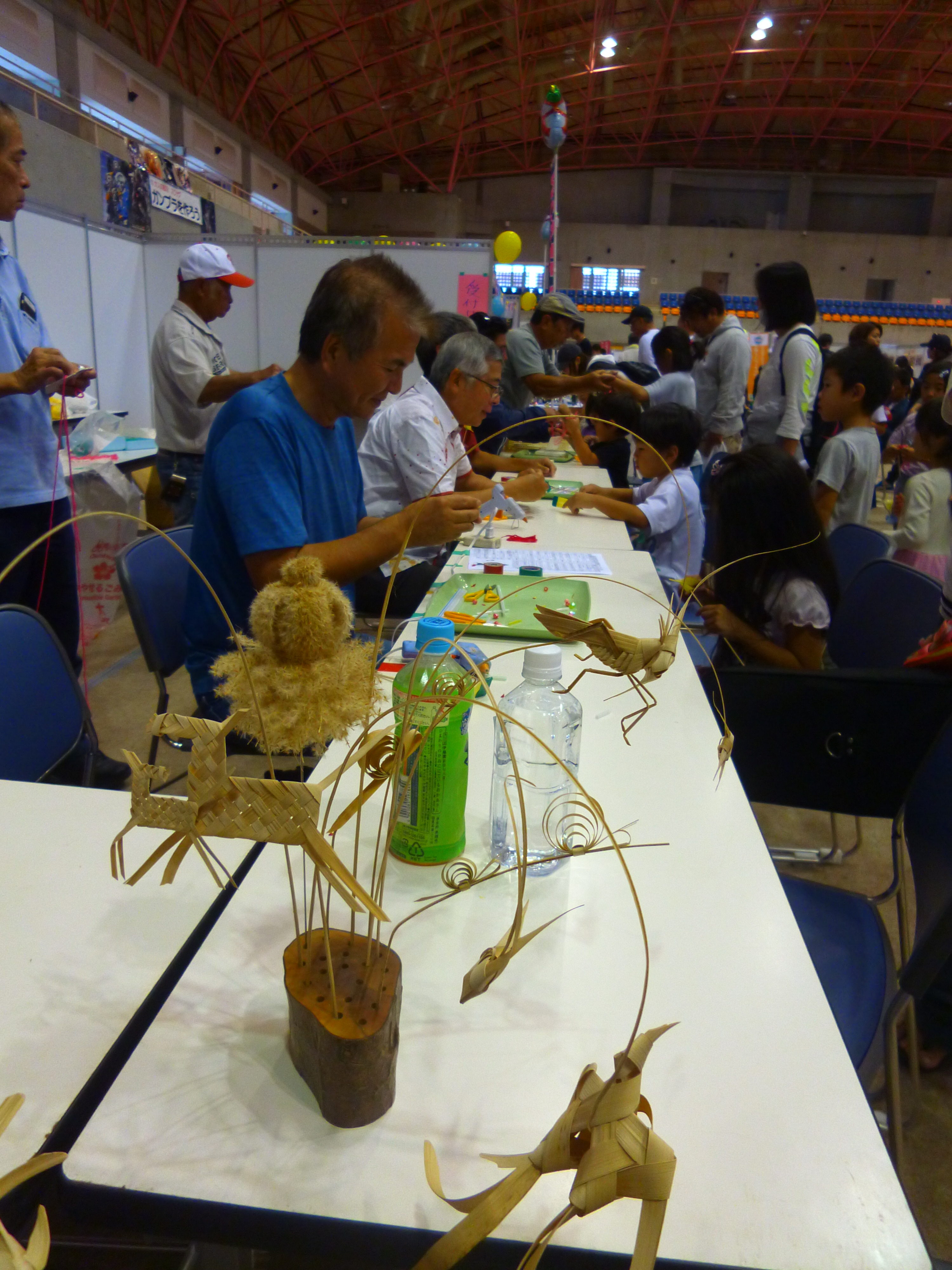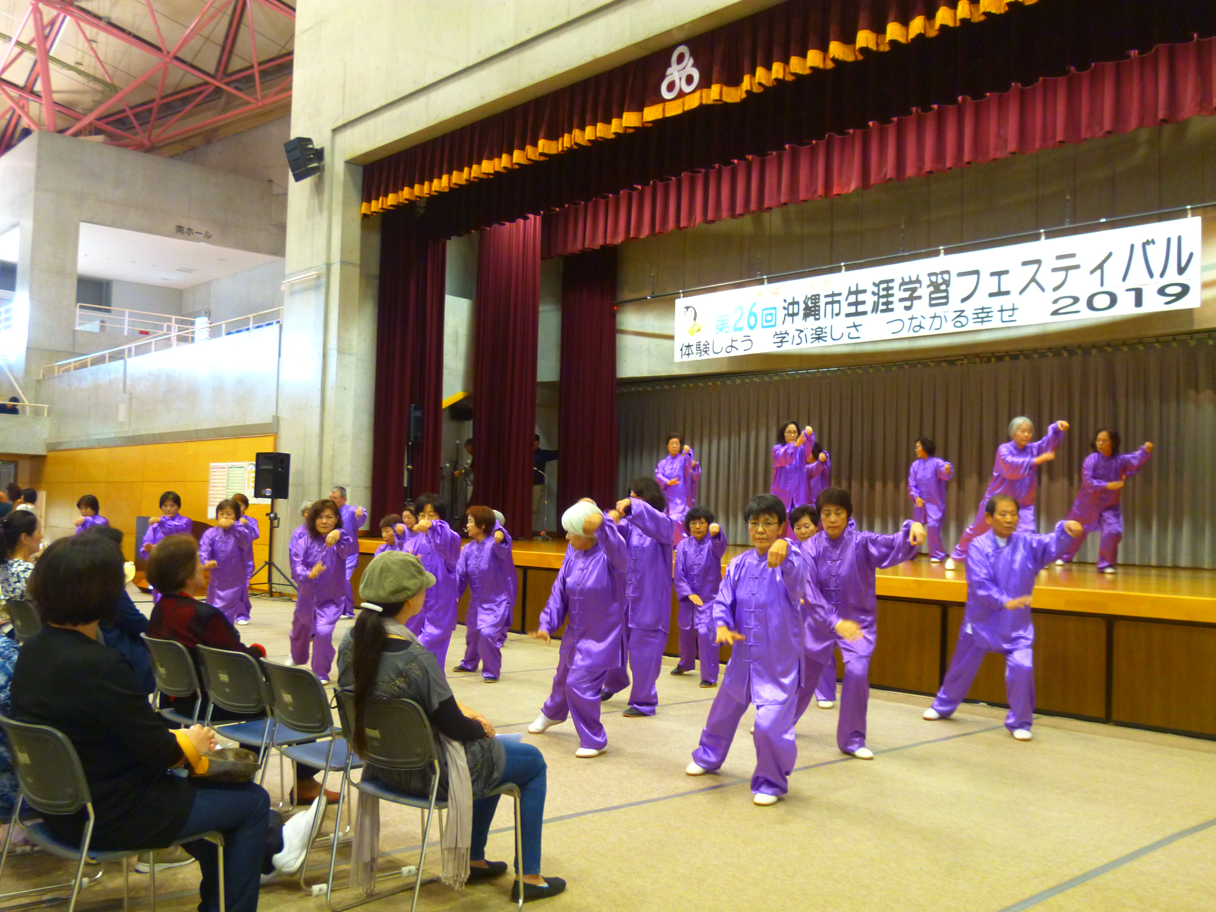 ところで、沖縄市の生涯学習フェス、とても賑やかでした。午前9時から午後4時まで、屋内、屋外2つのステージで、50演目(グループ)の舞台発表の他、体験型の様々なワークショップがあり、たくさんの市民が参加して、活気にあふれていました。