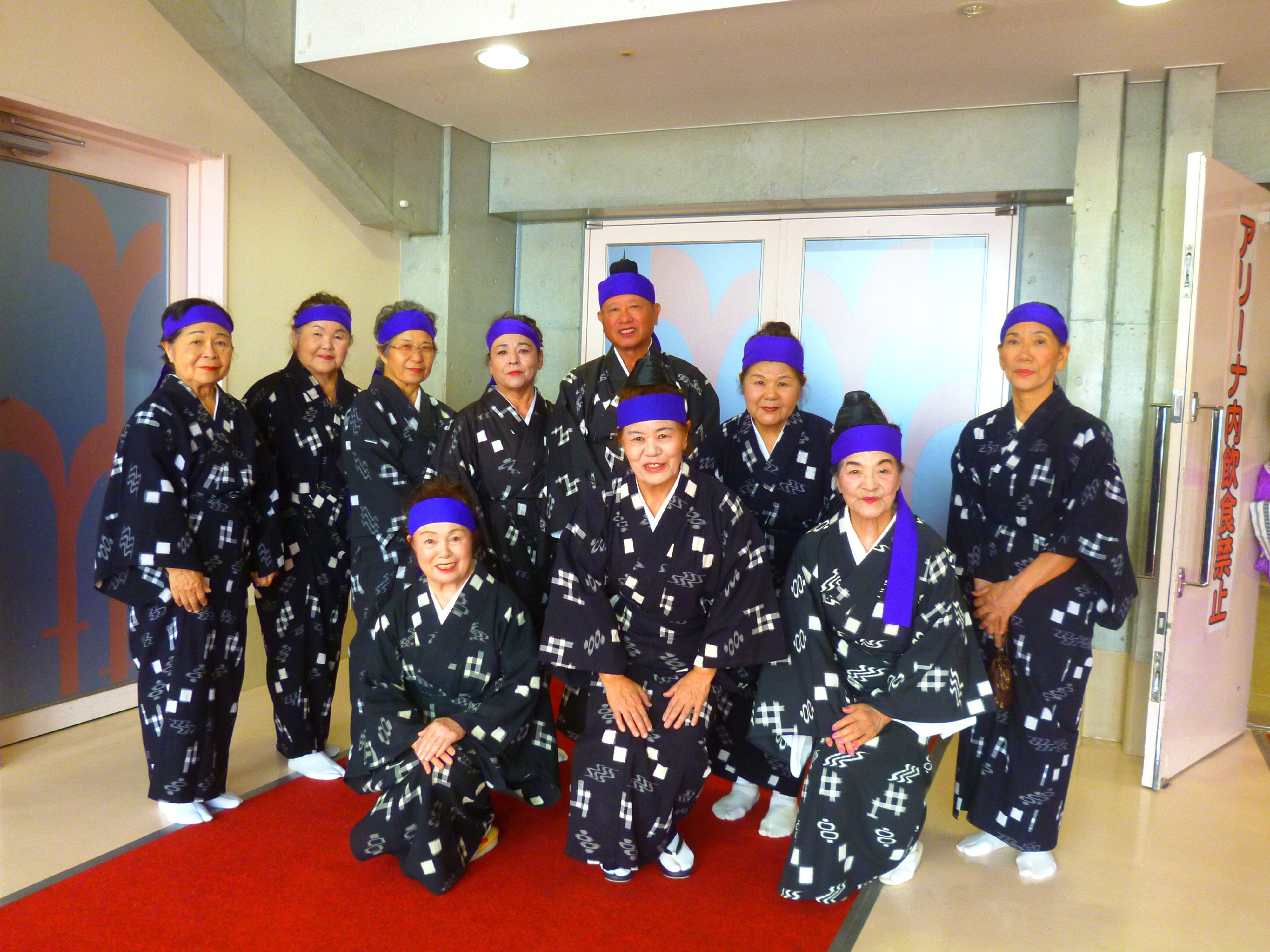 実は、辺野古で踊っていることがご縁で、昨年一月から沖縄市で琉球舞踊のサークルを指導しています。元々は退職教師の方々で組織する共済会のサークル活動の一環ですが、沖縄市の中央公民館を稽古場として利用させて頂いているため、今回の「生涯学習フェスティバル」への参加となりました。