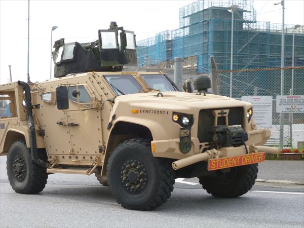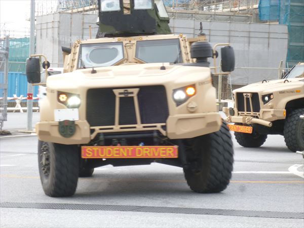 今日はやたらと米軍車両の往来が激しかった。こんな表示の軍車両が何度もゲートを出入りしている。「STUDENT DRIVER」、見習い運転手とでも訳したらいいだろうか。