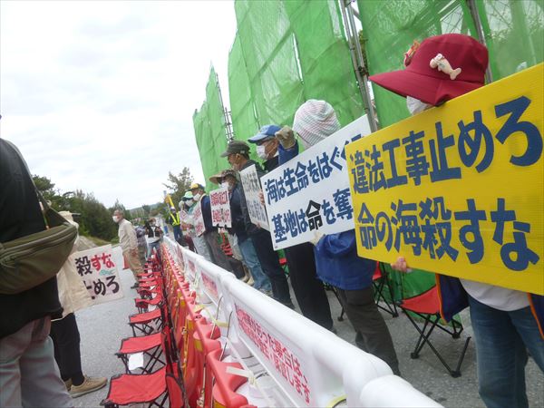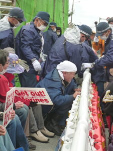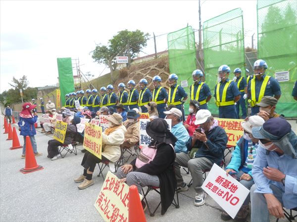 辺野古の座り込み抗議行動は、毎日40~50名の市民が参加、加えて機動隊、民間警備員と常に100人前後が入り乱れて過密、濃厚接触は避けられず、コロナ感染への危機感が高まっている。