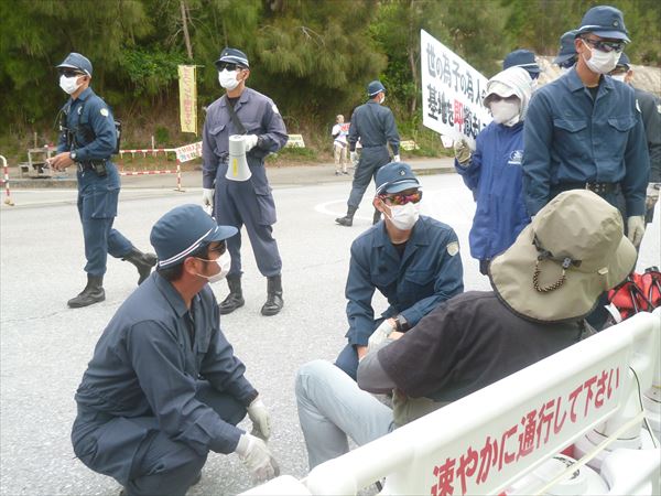 2.ゲート前での座り込み⾏動について (1)参加者は可能な限り距離を置いてください。 (2)機動隊との対応は、いわゆるごぼう抜きを避け、⾃主的に移動して下さい。