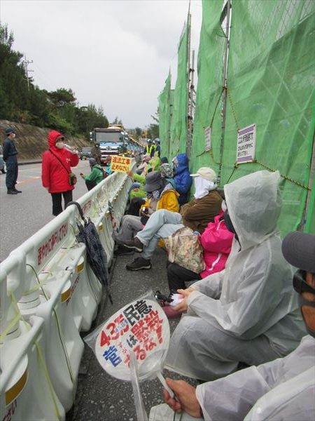 いつものように9:00の資材搬入に備えて30人ほどで座り込み開始。