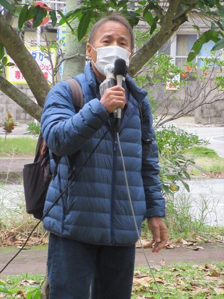 オール沖縄会議現場部会長の山城博治さん司会し、野党議員団から挨拶、報告があった後、14日月曜日からずっと名護市議会を傍聴してきた平和市民連絡会の北上田毅さんが、状況を報告した。