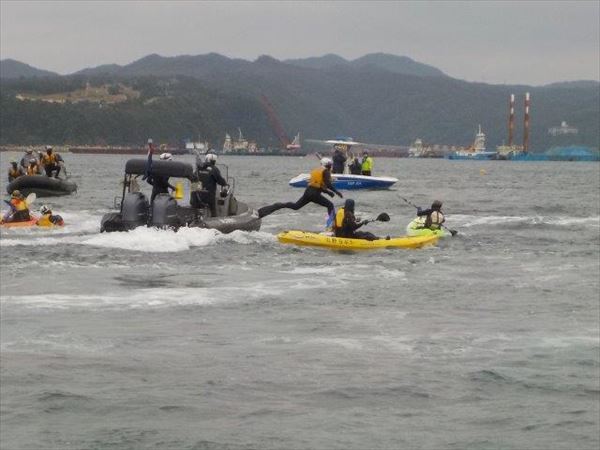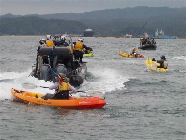 カヌー27艇、抗議船6隻、ボート1艇、総勢50人の参加で、海上での「辺野古NO」のアピール行動が行われた。