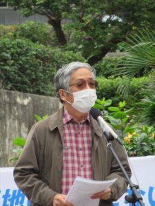 平和市民連絡会の北上田毅さんが、名護市議会の様子を報告し、渡具知市長の意見書、設計変更申請の問題点を解説、「渡具知市長は、何が市民のためになるのか、県民のためになるのかを、真摯に考えた行政を行うべき」と、指摘した。