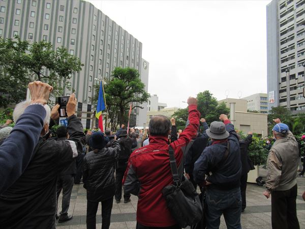 集会には、市民をはじめ、昼休み中の県庁職員や、那覇市役所の職員など250人余が参加した。