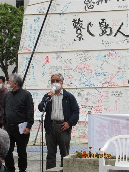 また、集会に先立ってオール沖縄会議の抗議声明文が発表され、共同代表、顧問らがそれぞれにあいさつした。