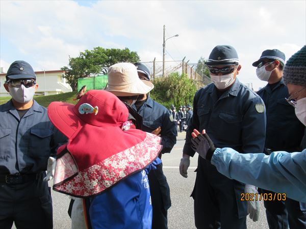 コロナ感染対策のため、「自主的に立ち上がって移動するので、身体に触れる強制排除はしないで!」と機動隊にも申し入れ、これまではお互いの立場を尊重しつつ、節度を持って対応してきたはずだった。今日は指揮官はじめ機動隊員が、威圧的で強権的だ。