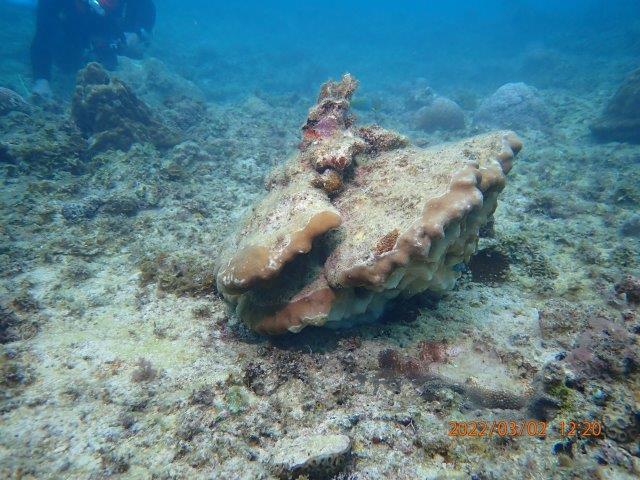 大浦湾のサンゴ投棄の現場で、潜水調査。ひっくり返っている。
