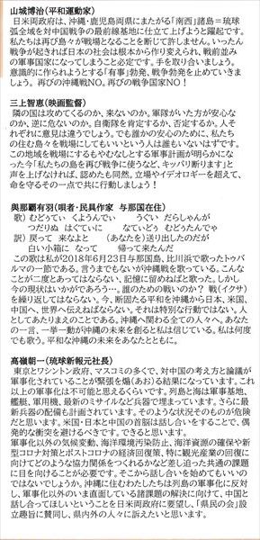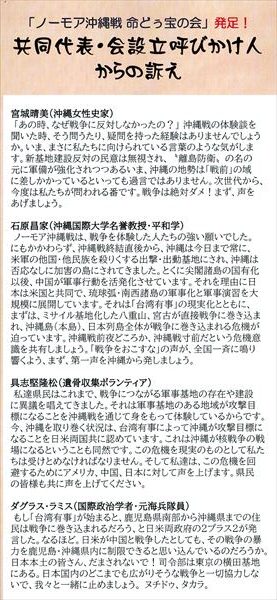 いずれも最近まで沖縄のことには全く関心がなかったという若者たち。原発や基地問題などもテーマにするウーマンラッシュアワー村本の漫才で沖縄のことを知り、もっと深く知りたいと、仲間を募って自主的にやってきたという。頼もしい。