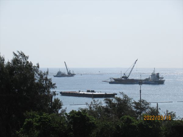 今日はいつもの貸し切りバスではなく、知り合いの車に便乗させてもらったので、いつもより40分も早く辺野古に到着。