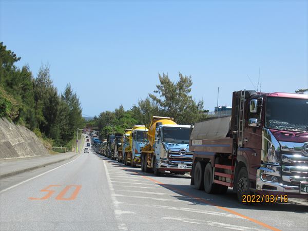 延々と続く工事車両に、思わずため息が出る。