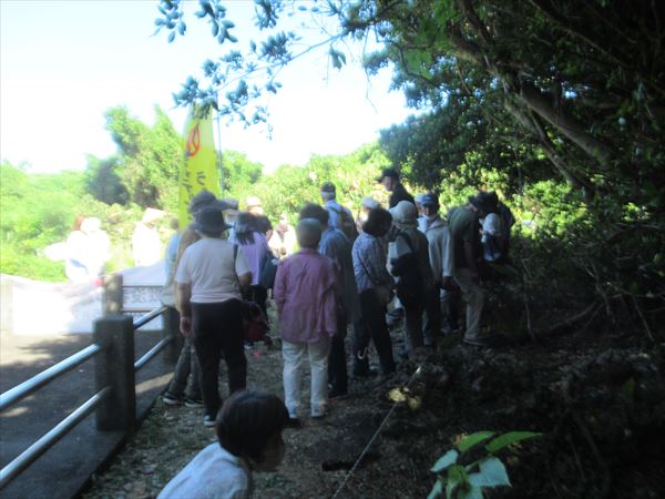 熊野鉱山の現状を聞いた後で、魂魄の塔の近くにあるシーガーアブと呼ばれる自然壕(洞窟)に移動して説明を受けた。