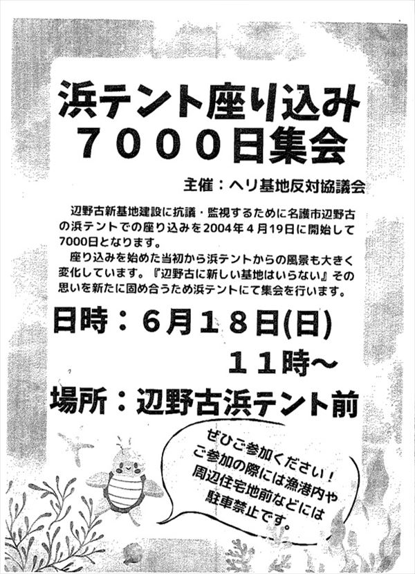 那覇を出発した早朝は、まだ穏やかな降り。辺野古へ到着したころから降った止んだり。しかし、やんばる地方は前日も洪水警報が出ていたので、台風の後の復旧がまだ完全ではないテントの下は、雨漏りも見られ、修繕に追わながらの座り込みとなった。