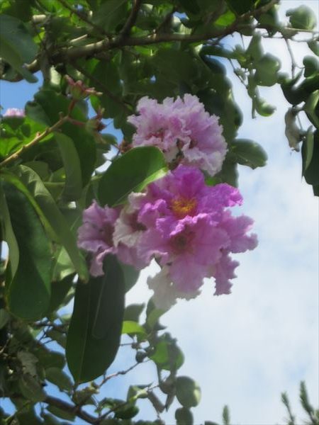 朝7時の県民広場。あたりに甘い香りが漂う。地面に散り敷くフクギの花。まだ人通りが少ないので、踏み荒らされたりしていない。なかなか風情のある光景に、気持ちも高揚する。